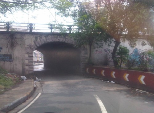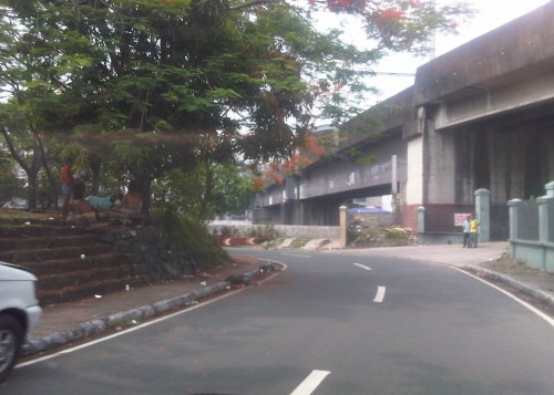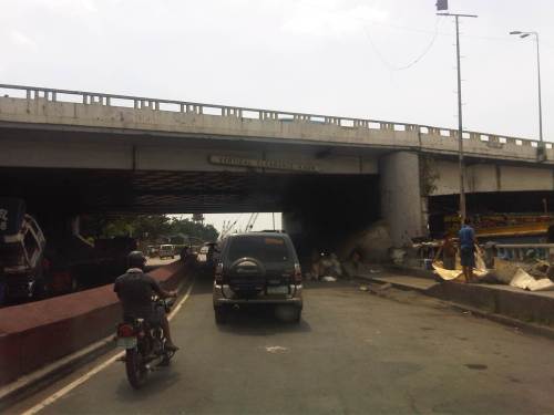 Taking a turn – turning from the approach towards the riverside portion of the Muelle del Rio, one can see the bridge for the LRT Line 1 and trees where homeless people usually take shelter. The driveway under the bridge is for a public transport terminal occupying the area under the bridge.