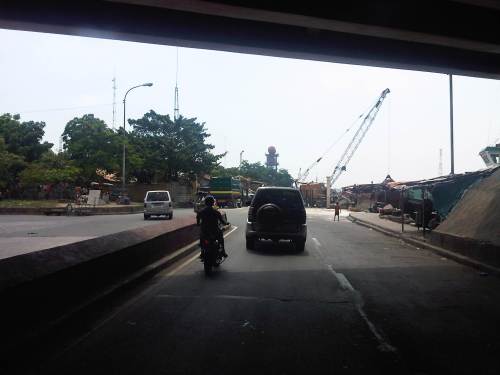Approach to the Del Pan Bridge – the bridge is where Radial Road 1 ends and Radial Road 10 begins. We didn’t cross the bridge spanning the mouth of the Pasig River but instead took the service road that led under the bridge to what is technically part of the Muelle Del Rio. The interchange provides access to Baseco and the container terminal as well as for vehicles making U-turns towards the southbound side of Bonifacio Drive.