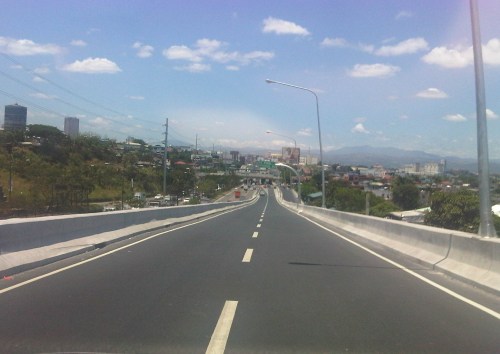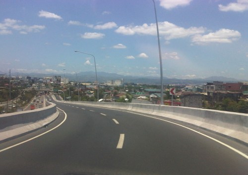 View from the top – this is what motorists will see upon reaching the top of the overpass as he/she turns towards C5, which is shown on the left of the photo. There is also a good view of the Sierra Madre mountains.