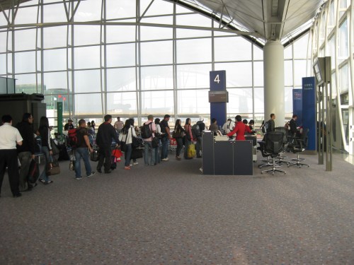 Boarding time – I was able to take a photo of a friend taking a photo as well as two queues before a couple of boarding gates at the airport. The queues were generally orderly with airport staff checking the boarding passes of people in line to facilitate the boarding procedure.