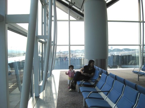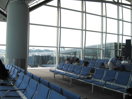 Best seats in the house – the layout of seats at the departure area allow people to have some personal space in a very public place. The windows afford a view of the surrounding area including airport operations for people interested in transport like our group just coming from an academic conference on transportation.