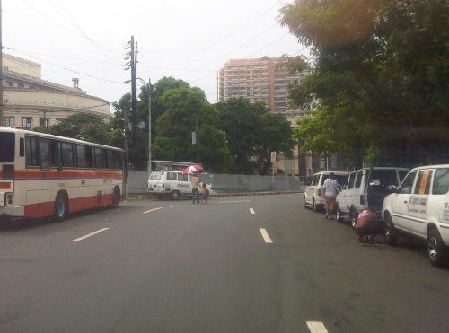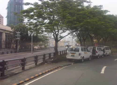 Approach from the Quezon Bridge – UV Express (FX taxis) parked along the roadside