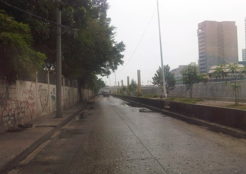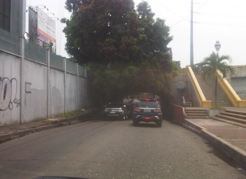 A bridge too close – the road comes quite close to the approach to MacArthur Bridge (the road on the other side of the barrier), which leads from Padre Burgos to Carriedo
