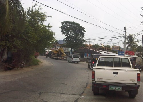 Rounding the curve – some congestion due to the slow-moving trailer carrying a backhoe/excavator