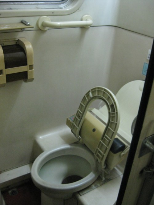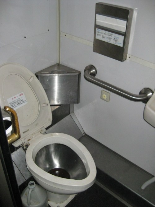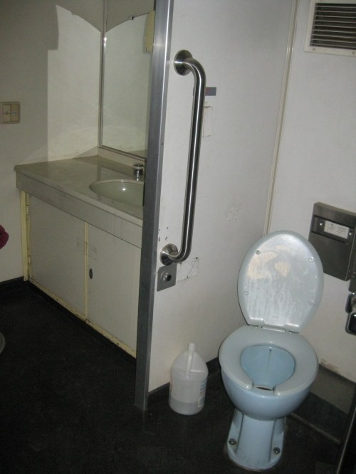 Toilets – the toilets are western-style with support bars for those requiring stability and a paper towel dispenser for the convenience of passengers.
