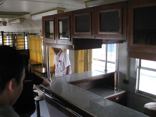 Entertainment – Yes, that’s a television set at the far end of the cabin. I can imagine that like in buses, the PNR will be showing some movies during trips to help passengers wile away the time. We were informed that big groups could actually take a car for themselves so it is also possible to have activities like workshops in the train. Perhaps groups could even have karaoke if they had the entire car to themselves.