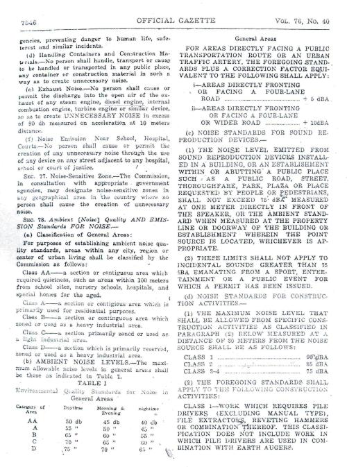 I reproduce below the three pages of what was the National Pollution Control Commission’s Memorandum Circular No. 002, Series of 1980, as published in the Official Gazette of the Republic of the Philippines, which until now serves as the basis for noise standards in the country. Recent initiatives led by the DENR’s Environmental Management Bureau seeks to update/revise these standards and a draft has been circulated to members of an inter-agency committee and industry. Perhaps our local governments could take a look at laws that are often set aside in part because of a lack of instruments to be able to quantify noise. I think curbing noise pollution should significantly improve our quality of life and would have positive impacts to our health.