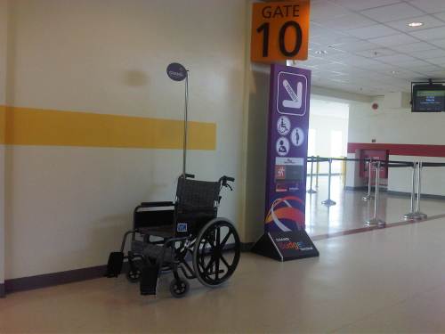 Wheelchair for passengers requiring it and sign stating priority for boarding (PWDs, pregnant women, those with small children)