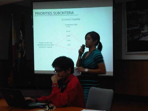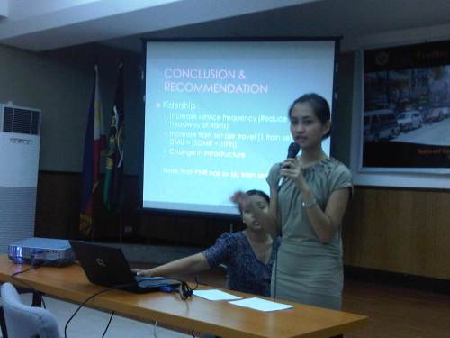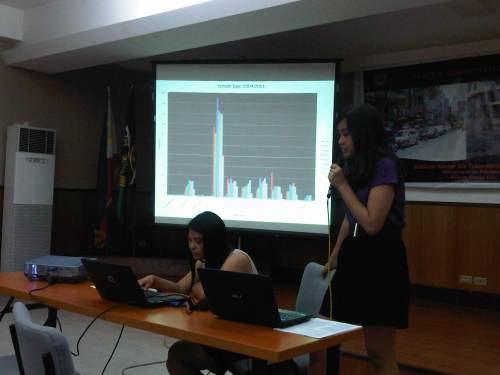 Undergraduate students under the Transportation Engineering Group of the Institute of Civil Engineering of the University of the Philippines Diliman presented last March 26, 2012. A total of 17 presentation were made including 12 for completed studies and 5 research proposals. One presentation was deferred as the group was still analyzing their data and could not make the deadline for draft manuscripts.