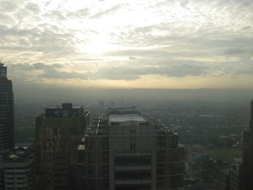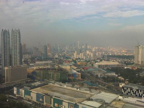 Take two – a closer look of Eastwood and the outlines of the Sierra Madre mountains. The smog seems thicker over the Marikina Valley and Quezon City as any other structure is practically hidden by it beyond Eastwood.