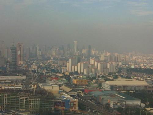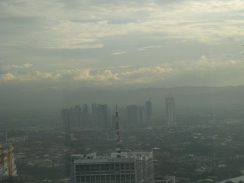 We were early at the venue of the seminar we organized before the Holy Week. The seminar venue was on the top floor of a tall building in the Ortigas Center area and afforded us an almost 360 degree view of the surrounding areas and beyond. At 6:45 AM, the sun was steadily rising and it was already bright enough to look into the horizon from different parts of the venue. I took the following shots while we were setting up for the seminar and it is clear that air quality is really bad in Metro Manila and its surrounding areas. Most of this may be attributed to vehicle emissions as the DENR estimates 65% of air pollutants coming from mobile sources while only 21% are from stationary sources (i.e., factories) and 14% from area sources (e.g., burning of garbage or grass).
