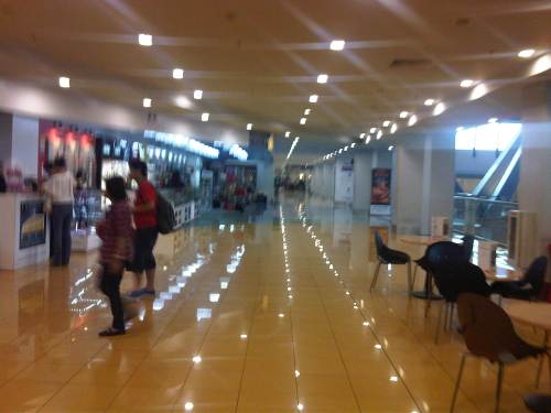 This way leads to the unopened area of the terminal, which includes space for more shops and the multi-level parking building. On the left side across Burger King are ATMs and counters of banks for currency exchange.