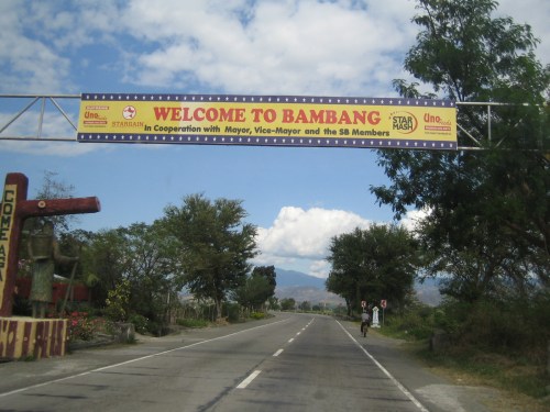 Entering Bambang, Nueva Vizcaya, I was a little disappointed that there was no grand arch like those marking boundaries in other cities or towns along national highways. Instead, there’s this sponsored sign on a gantry. Ahead, some of the chevron signs have been stolen, leaving only a few installed and empty posts.