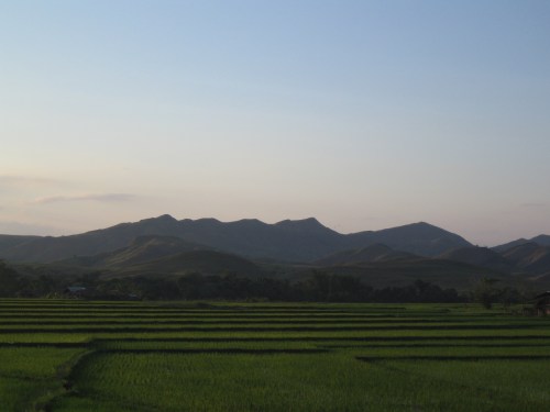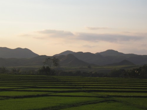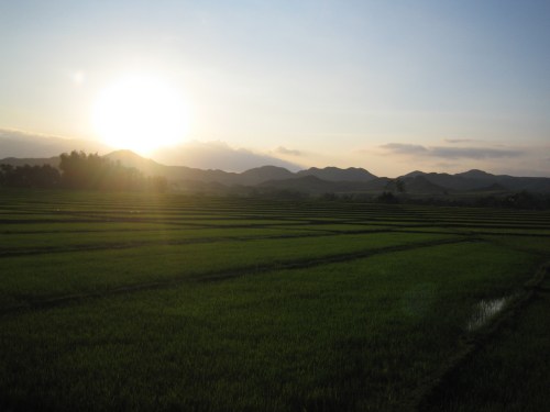 The light from the sunset presents travelers with surreal sights with the rice fields and the mountains often combining for picture-perfect moments. I took this with my Canon Ixy on-board a moving vehicle!