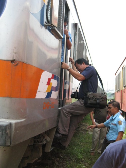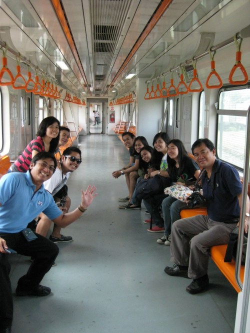 Try-outs – our students and my colleagues try out the seats as we were ferried from the Tutuban platform to the depot where our hosts gave us a technical tour of the rolling stock and other facilities.