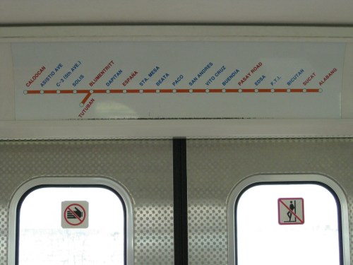 Line diagram – like most trains, the PNR displays information on the stations along its commuter line. We visited their main station at Tutuban and rode a train from there to Espana. I can imagine that the stations listed in red would be express stations in the future but then conspicuously “blue” are Paco and Buendia Stations, which I believe should be major stops for the PNR.