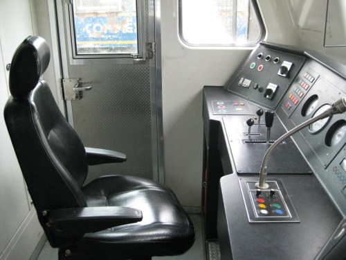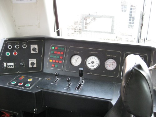 Control panel – the lead car of the train features this more modern panel for the train controls. Note also the grills on the windshield of the train to mitigate the impacts of stones or other items thrown at the train as it rolls along its tracks near communities that include informal settlers.