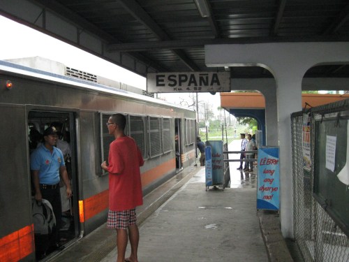 All aboard! – the Espana Station platform after all passengers have boarded the train. One passenger seems to be talking to the security personnel at one of the doors. The DOTC and the PNR posts security staff on the trains to ensure safety and security on-board. Their presence is a deterrence against criminality including snatchers and con-men who prey on students and the inattentive.
