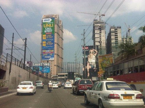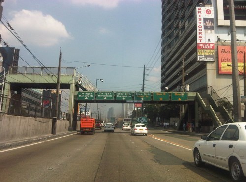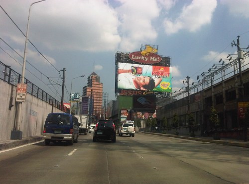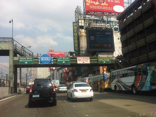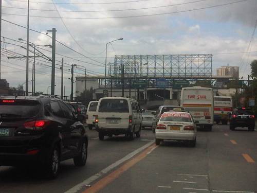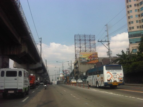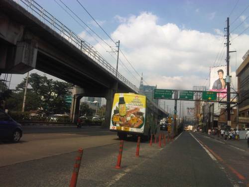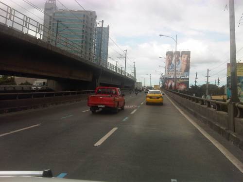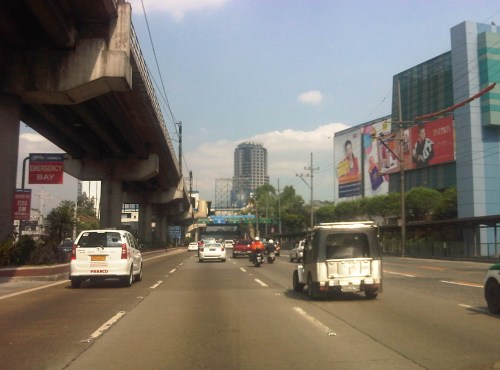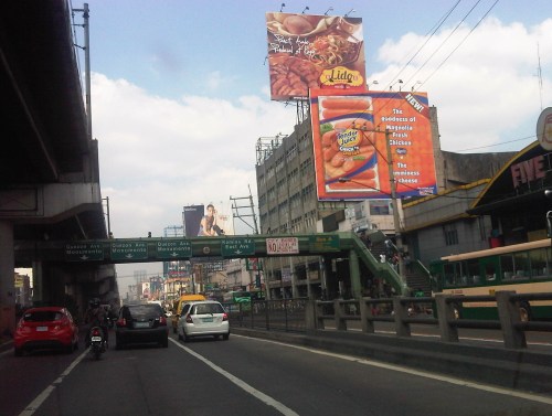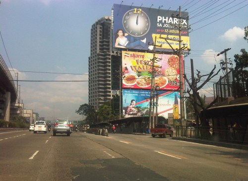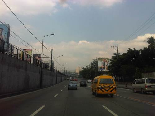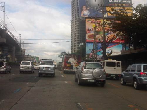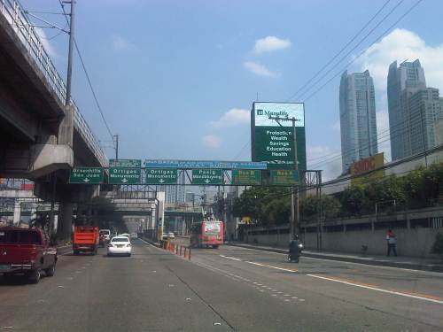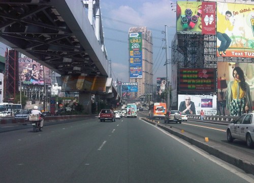 Section across the ADB and approaching Ortigas Ave. One of Galleria’s buildings is seen behind the giant billboards. The MRT