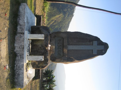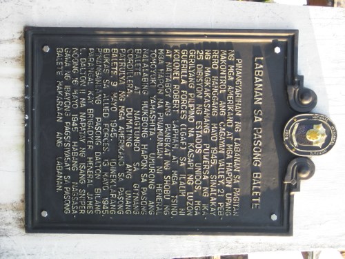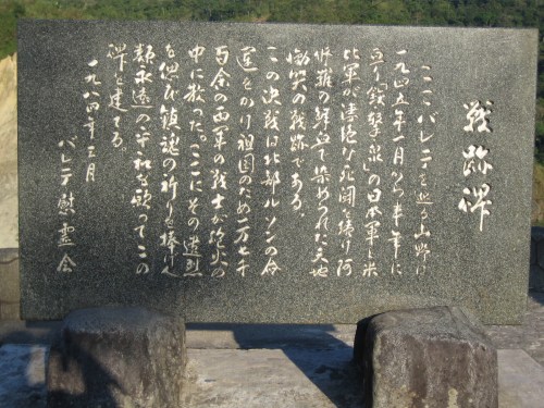 Stone marker with inscriptions in Japanese commemorating those who fell in the battles at Balete Pass.