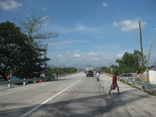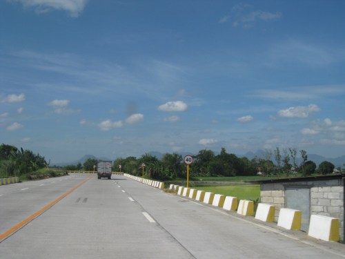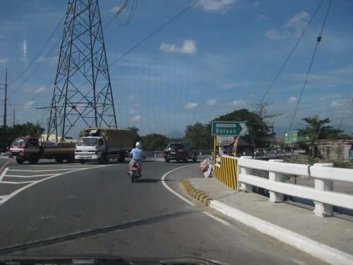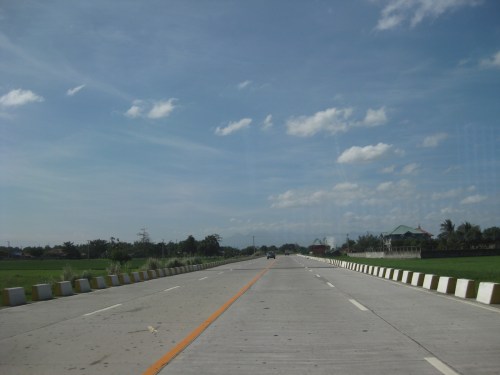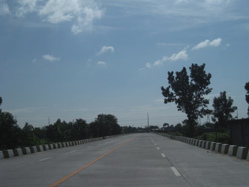 Straight, level section approaching the west junction with the Gapan-San Fernando-Olongapo highway. The tall electric pole marks the junction.