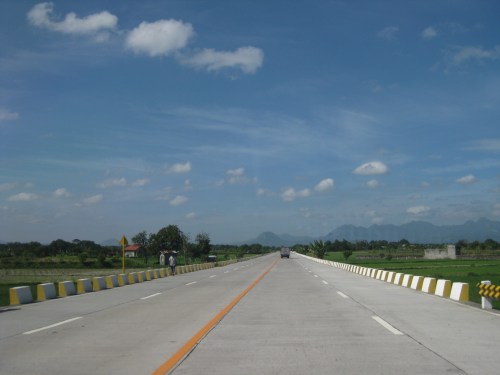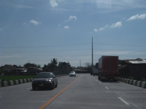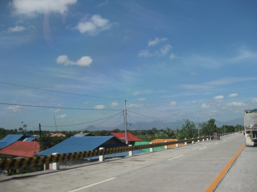 The highway is elevated probably to prevent flooding (of which the area has lots of experience including the times when lahar was a severe problem in the area). As such, travelers can see the rooftops of a lot of most houses along the highway.