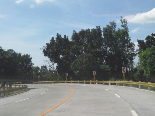 The chevron signs indicating the curvature of the road section are quite few. Perhaps the highway engineers became too conscious of the controversies elsewhere where there seems to be an abundance and propensity for such signs. The embankment for the highway is visible from the photo.
