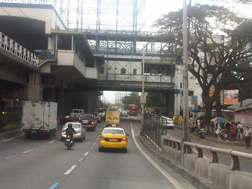 Motorcycle lane along EDSA beneath the EDSA-MRT GMA Station