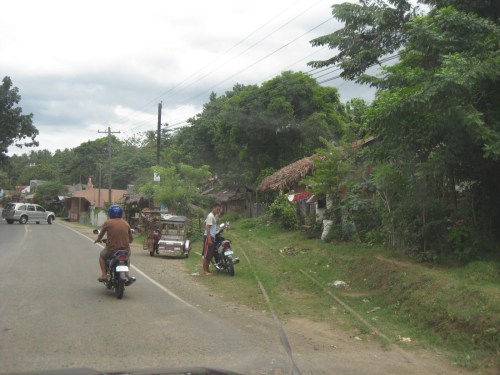 The railway tracks parallel to a barangay road – many sections again appear to be covered by dirt and growth. A tricycle is parked atop the tracks, probably waiting for passengers on space that is being used as a shoulder with respect to the local road. As communities have access to local roads, there are no trolleys here.