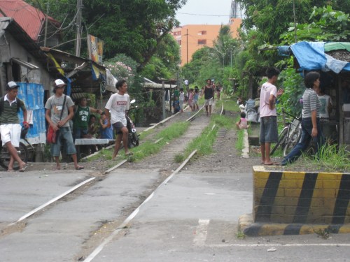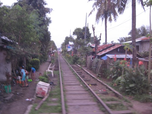 Neglected railway tracks – note the grass growing along the tracks and covering the rails. Also, from the looks of it some ties seem to be missing or just buried in the dirt. Many houses and shanties are obviously within the 30m ROW of the PNR. Such situations create a high risk for untoward incidents should rail services become regular and more frequent.