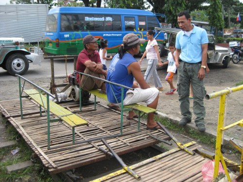 Taking a closer look at the motorized trolleys of Naga City – our driver Roy speaks to two drivers/operators of the trolleys to ask them about operations. The trolleys are not so much different from the one we saw along the road while traveling through the towns of Quezon Province and certainly look like their relatives in Manila. They are made of light but sturdy bamboo with the occasional metal parts and some have makeshift couplers in case two or three are connected to form trains! The trolleys even have benches to allow for a few seated passengers.