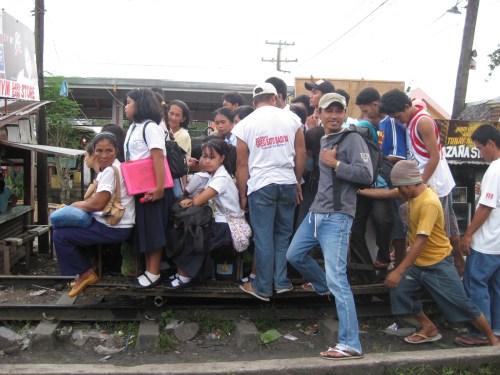 Passenger mix – the trolley service is popular to different users including students and laborers. They are cheap and the most practical (direct) mode of transport to their home, which are located along the railway line. Note the concrete ties for the tracks, indicative that this section has already undergone rehabilitation in the past when the old wooden sleepers were replaced by concrete ties.
