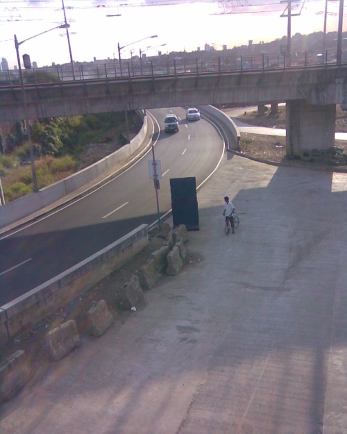 Another view from the walkway with a good perspective of the underpass connecting to a bridge to C5. Visible from this position is the area under the bridge that was proposed to be an eastern bus terminal during a previous dispensation at the MMDA.