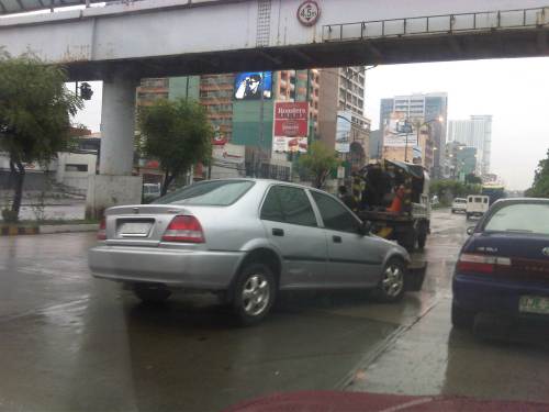 Honda City with damaged front bumper – the vehicle hit one of the concrete barriers of the U-turn slot with a trajectory indicating it apparently came from the direction of the overpass. After passing the vehicle, I saw that the left front wheel is already missing and apparently destroyed when the car hit the barrier. The damage to the car indicated tremendous impact and I just hope the driver and other occupants (if any) were wearing their seatbelts when the car hit the barrier. It would have helped also if the car had airbags. These safety devices are not standard issue in many if not most vehicles in the Philippines allowing dealers to make airbags optional and giving the buyer the false perception of getting the vehicle with a cheaper price.