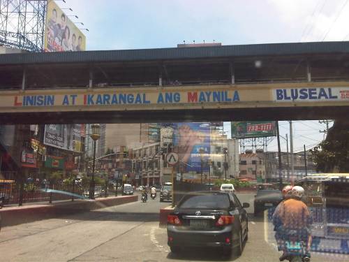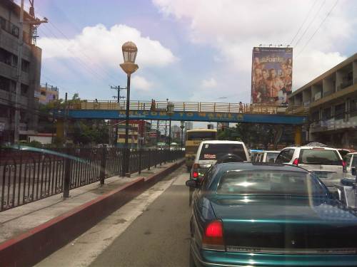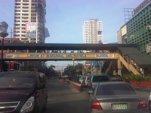 I took some photos of pedestrian overpasses along Espana Avenue in Manila while en route to a meeting in Malacanang. I was hoping to capture the conditions along such facilities and maybe compare them with my observations along Commonwealth Avenue. Following are photos taken from my trusty Blackberry. I ask my readers to excuse the reflections due to the sun bearing down on the windshield of our vehicle.
