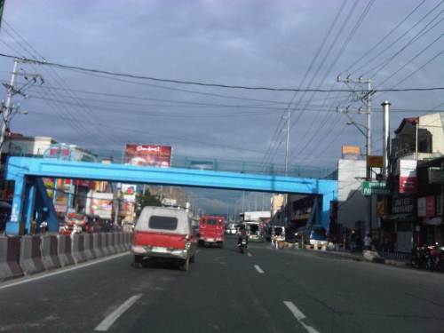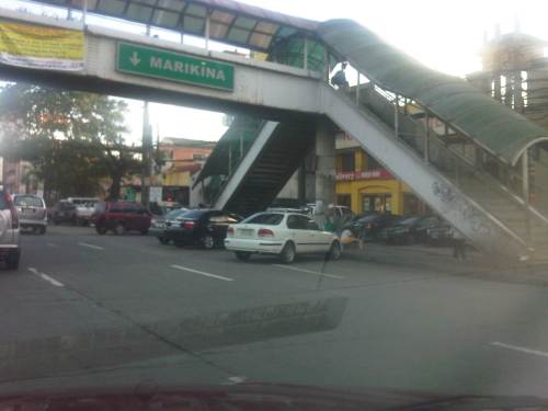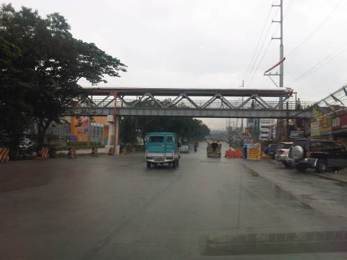 Overpass across Cainta Public Market and Robinsons Cainta – this is a concrete structure that is covered and, surprisingly, is clear of vendors thanks to the efforts of Cainta enforcers and the mall security. The public market side (left side of the photo) is too crowded with the pedestrian immediately encountering informal vendors’ stalls upon descending the stairs. While there are no vendors atop the overpass, there are many tambays loitering about and the usual beggar sitting anywhere about the structure (usually at stairs along the public market side). The facility extends all the way towards the mall, which can be accessed via its second level.