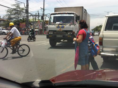 I saw these three vehicles, two motorcycles and a car, slowly encroaching towards the center of the intersection of Katipunan and C.P. Garcia Avenues last night. The red light was clearly displayed along with the number of seconds remaining that was indicated in the countdown timer installed along the southbound approach of the junction. They seemed to be unaware of the significant amount of time remaining before the green light. Worrisome was their being unmindful of the trucks turning left to C.P. Garcia from the northbound approach of Katipunan. Many of these trucks were the big trailer types that could easily wreck the car or crush the motorcycles should they mistakenly cross their paths. Requiring more space for their turning movements, many trucks encroach upon the second and third lanes from the median and would probably have hit one of the vehicles that were already past the nose of the median island on our side of the road.