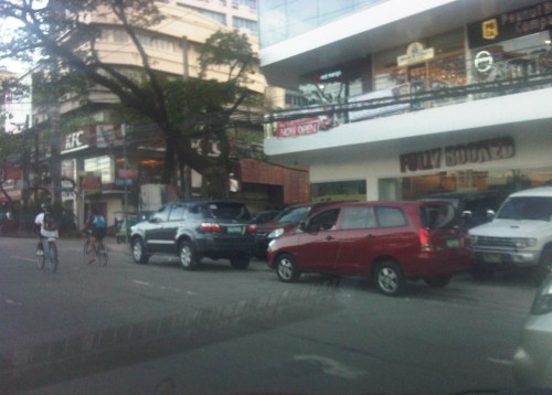 Another photo showing the parking situation in front of the new building – while traffic is generally a manifestation of economic activity, one opinion is that many developers are irresponsible by designing buildings that have inadequate parking and resulting in the general public bearing the burden of traffic externalities. Add to this local governments that turn a blind eye on such discrepancies in design (who reviewed the design that obviously violated the building code?) only to be on the receiving end of complaints. In some cases, LGUs probably will be forced to shoulder costs of providing solutions that developers should have covered in the first place if they were responsible enough or made responsible for mitigating negative impacts of their projects.