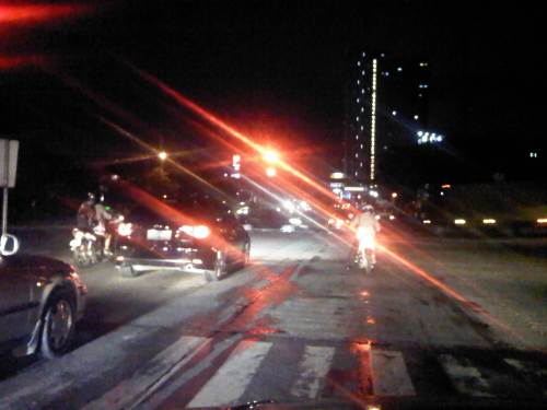 There was no yellow box or markings clearly indicating the clear area for the intersection. However, it was quite clear where vehicles should stop considering there was a pedestrian crossing (incorrectly painted as zebra despite the traffic signals) at the approach of the intersection and vehicles should stop before these markings. The driver of the vehicle to our left obviously wanted to follow the example of the black car and already positioned his car over the pedestrian crossing. Is this a manifestation of being swapang or maybe the thinking that you want to be ahead of the rest?