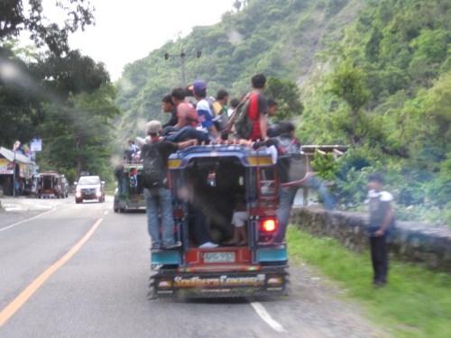The photo below was taken as we negotiated a populated area along Kennon Road in 2009. Note the two jeepneys in the photo that are loaded with passengers. It was a surprise that no passengers were hanging by the door of the jeepney like what we usually see in Metro Manila during the peak hours. Nevertheless, such an image suggests that the public transport supply is no longer sufficient for the passenger demand along this route. Perhaps their numbers are no longer enough or maybe there is a need for a public utility vehicle with a larger capacity? One thing is sure and that the practice of overloading is unsafe and is a fatal crash waiting to happen given the geometry of Kennon Road. While this seems acceptable to many (I couldn’t even count how many people were sitting on the roofs of the jeepneys we passed.), this is not something that should be encouraged, and careful examination of services is necessary for both the local government (in this case Baguio) and the national agency in-charge (LTFRB).