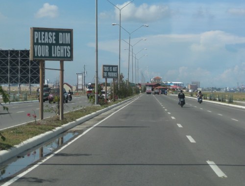 I took the photo below in Cebu during one visit in 2010. The signs were posted along the coastal highway in the South Road Properties (SRP). Our friend explained that the signs were supposed to have been posted there as a spiteful message by a former mayor of the city to a political rival whose entourage commonly used the highway going to the city. Apparently, the vehicles on the politician’s convoy have the habit of using their lights even during the day to announce their presence in traffic. It seems their headlights are always on high beam (i.e., bright), which can be distracting for opposing traffic even if there is a median island along the highway. I can also imagine that in the past, vehicles on the convoy would probably use sirens or wangwang.