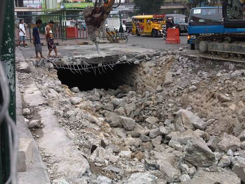 Demolition work of slab covering drainage along Marcos Highway westbound (before)