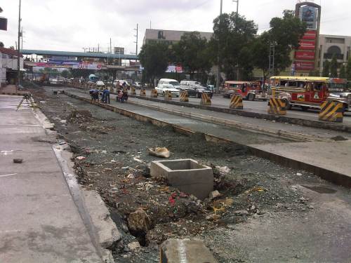 The following photos were taken during a weekend trip where I had to pass through Imelda Avenue. Many areas along the highway are flood-prone (much of Imelda was submerged during Ketsana/Ondoy) so this eventuality is partly to blame for what seems to be a slowly progressing project that has already wasted a lot of valuable time and fuel. Hopefully, the project will be completed before the “ber” months arrive when traffic naturally starts to increase due to the anticipation for the Christmas season.