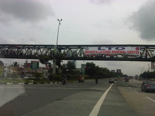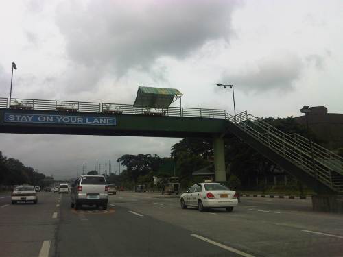 Overpass across AIT and CHK of UP Diliman. The canopy is one of two set up atop the overpass for MMDA personnel taking random speed samples to enforce the 60 kph speed limits along Commonwealth. On most days I travel along Commonwealth, there is usually no one taking measuring speed along the NB direction of the highway.
