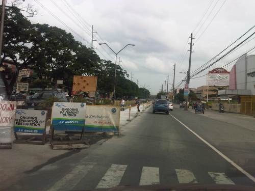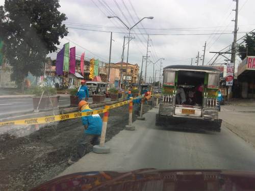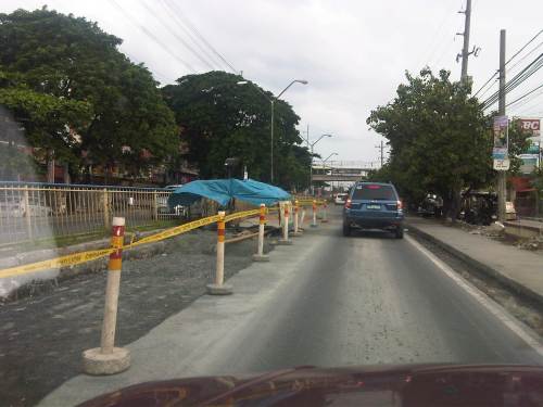 Partly completed works along Marcos Highway westbound just after the junction with Felix Ave./A. Tuazon Ave. and across from Sta. Lucia Grand Mall