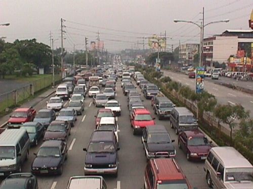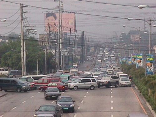 Figure 1: Morning traffic congestion in 2003 along the northbound direction of Katipunan Avenue in front of the Ateneo De Manila University (notice that there was no U-turn slot near Gate 2 at the time)