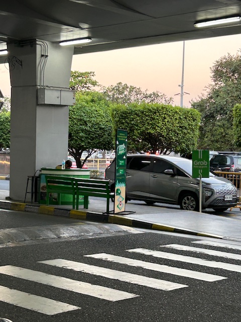 Grab station at the NAIA Terminal 2 arrival level driveway
