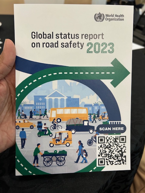 Information and links to the WHO Road Safety Data app. The app is available on Google Play and the Apple App Store. You can also scan the QR code in the photo to get the app and install it on your gadget.