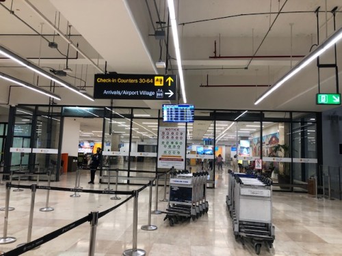 Entrance towards the check-in counters. There is no security machine here and but there is a routine check of travel documents of passengers. There are weighing scales for luggage so passengers can check if they are over their limits and still have an opportunity (and the space) to reconfigure.