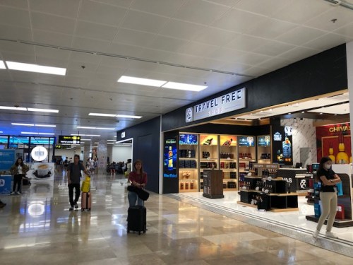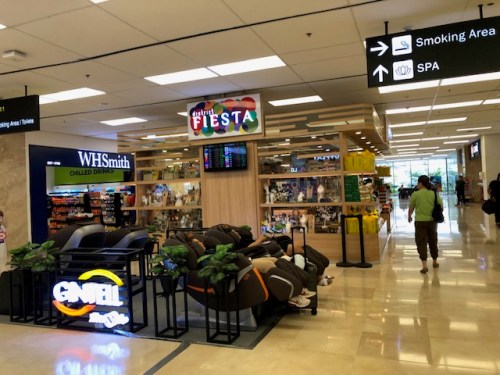 There’s a WHSmith store at Terminal 1. The photo also shows massage chairs and a local souvenir shop, District Fiesta.